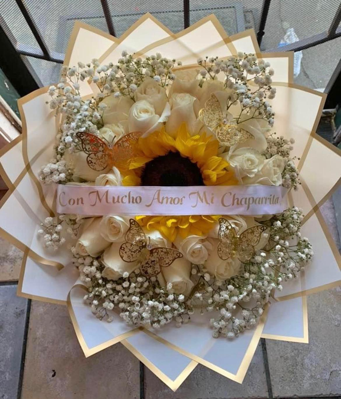 Be the first to review “2 Dozen Roses & a Sunflower With Personalized Ribbon ( 009 )”